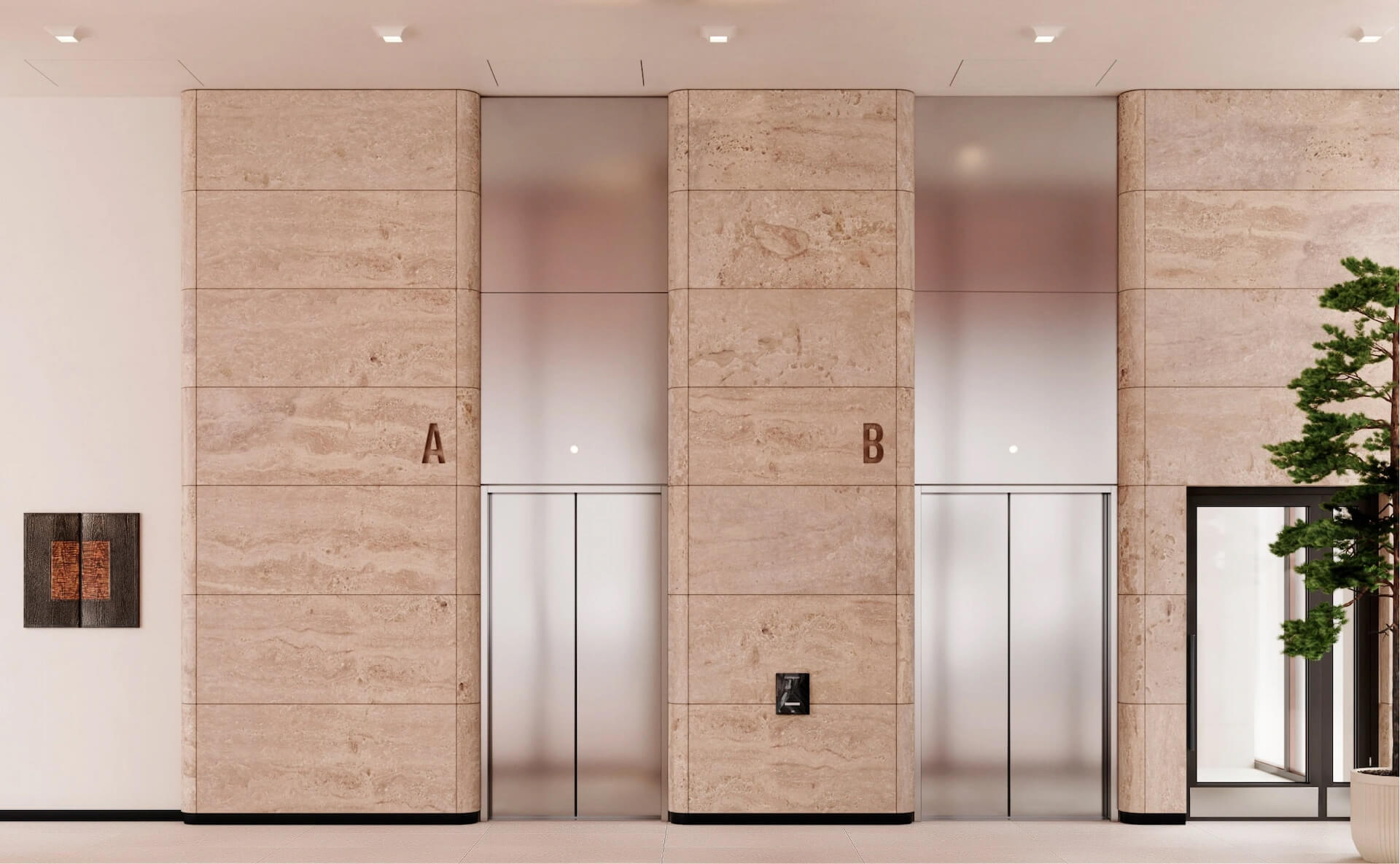 Лобби разделены на несколько функциональных зон. Гостевая зона с мягкими креслами и живыми растениями создаёт уютную атмосферу. Ресепшн оборудован современными системами коммуникации для удобства жителей и их гостей. Возле лифтов предусмотрены зоны ожидания. В каждом корпусе есть колясочные и кладовые помещения, а также комнаты для хранения велосипедов и мойки лап домашних животных.