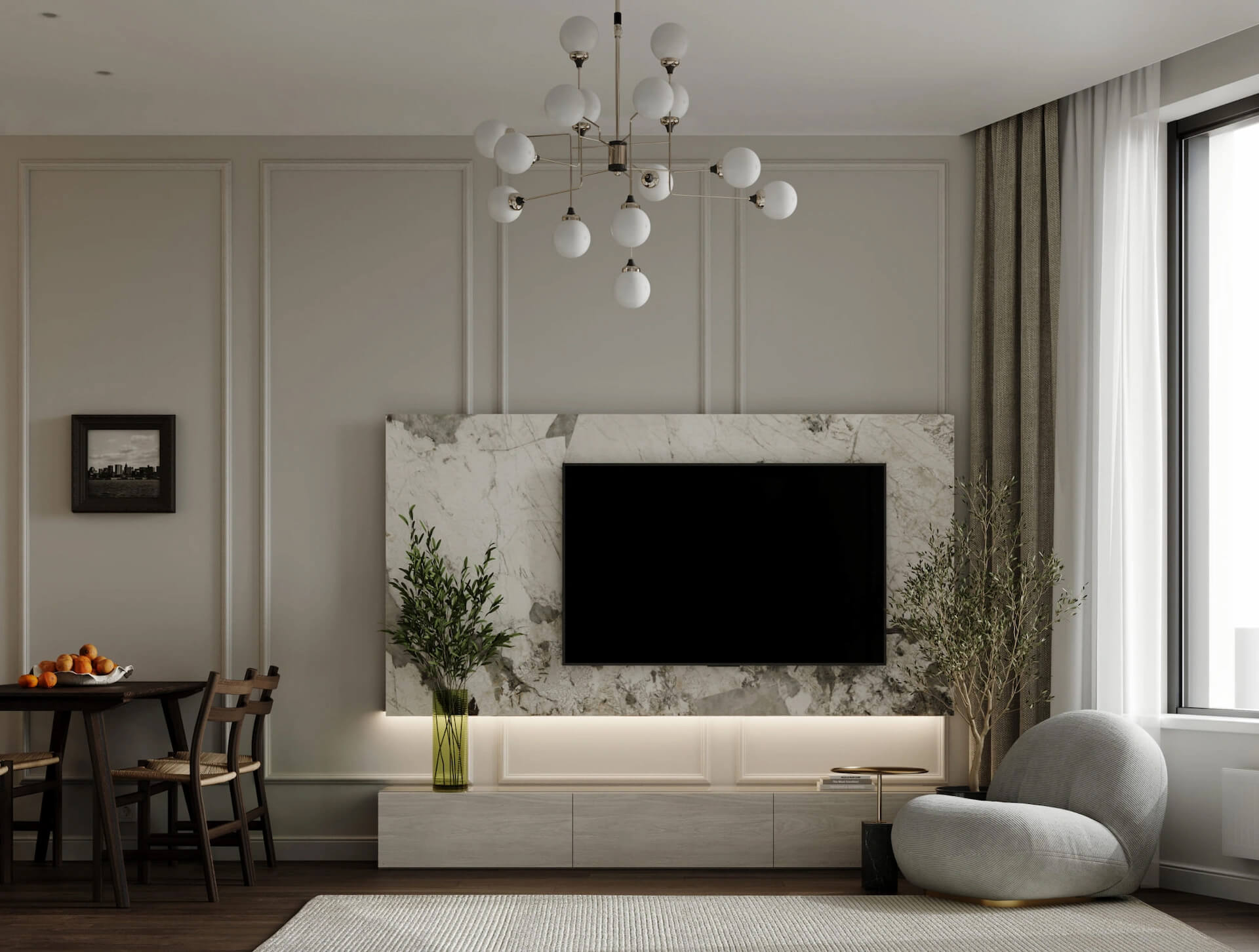 Покупатели могут выбрать один из двух стилей отделки – современный или неоклассический. В интерьерах используются натуральные материалы и премиальные покрытия, создающие атмосферу уюта и элегантности. Полы отделаны инженерной доской и керамогранитом, стены оформлены качественными обоями с покраской, а потолки выполнены из гипсокартона с декоративными элементами.